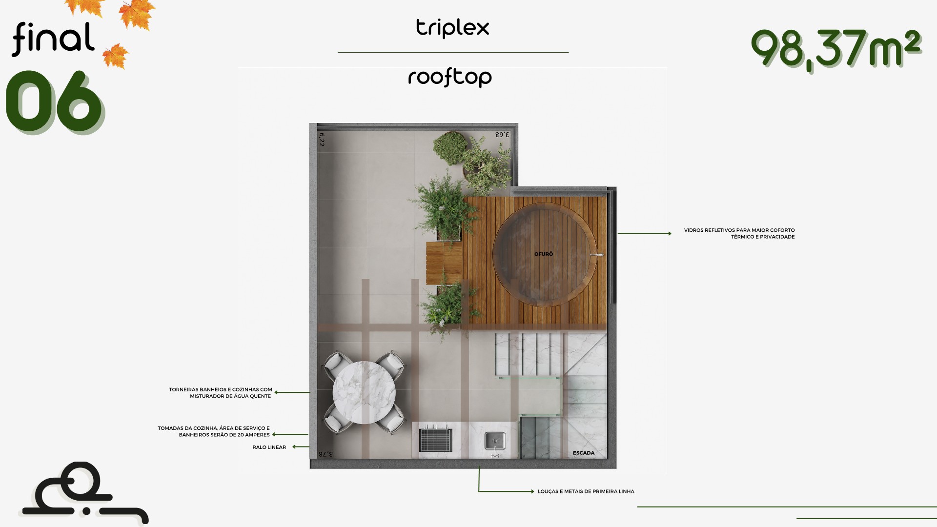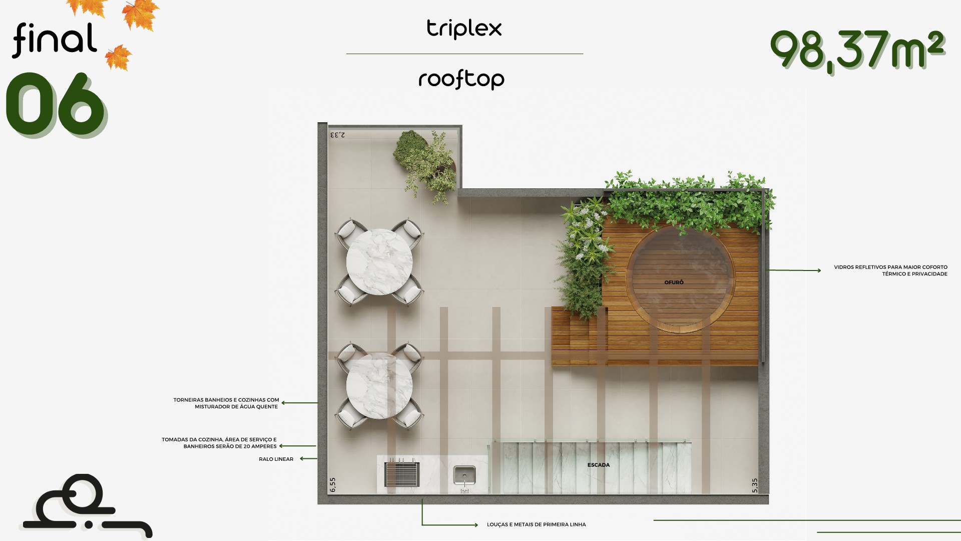 - Diferencial: Rooftop privativo com ofurô (em algumas unidades)