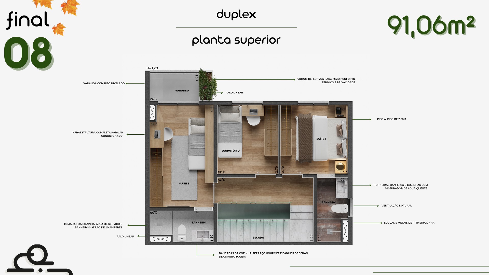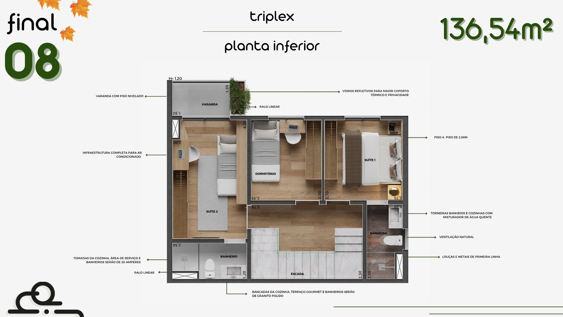 - Infraestrutura para automação (iluminação, TV e persianas)