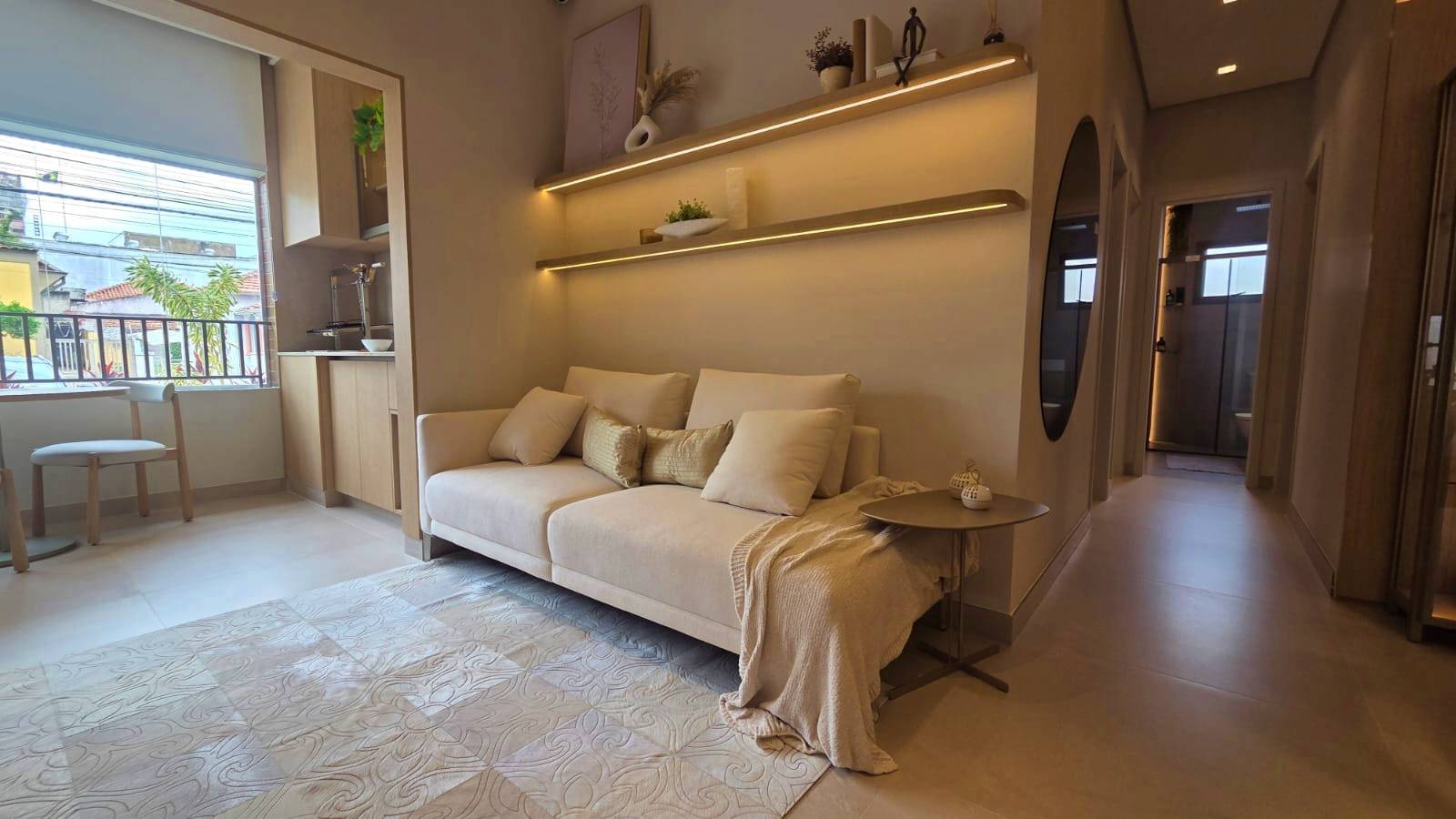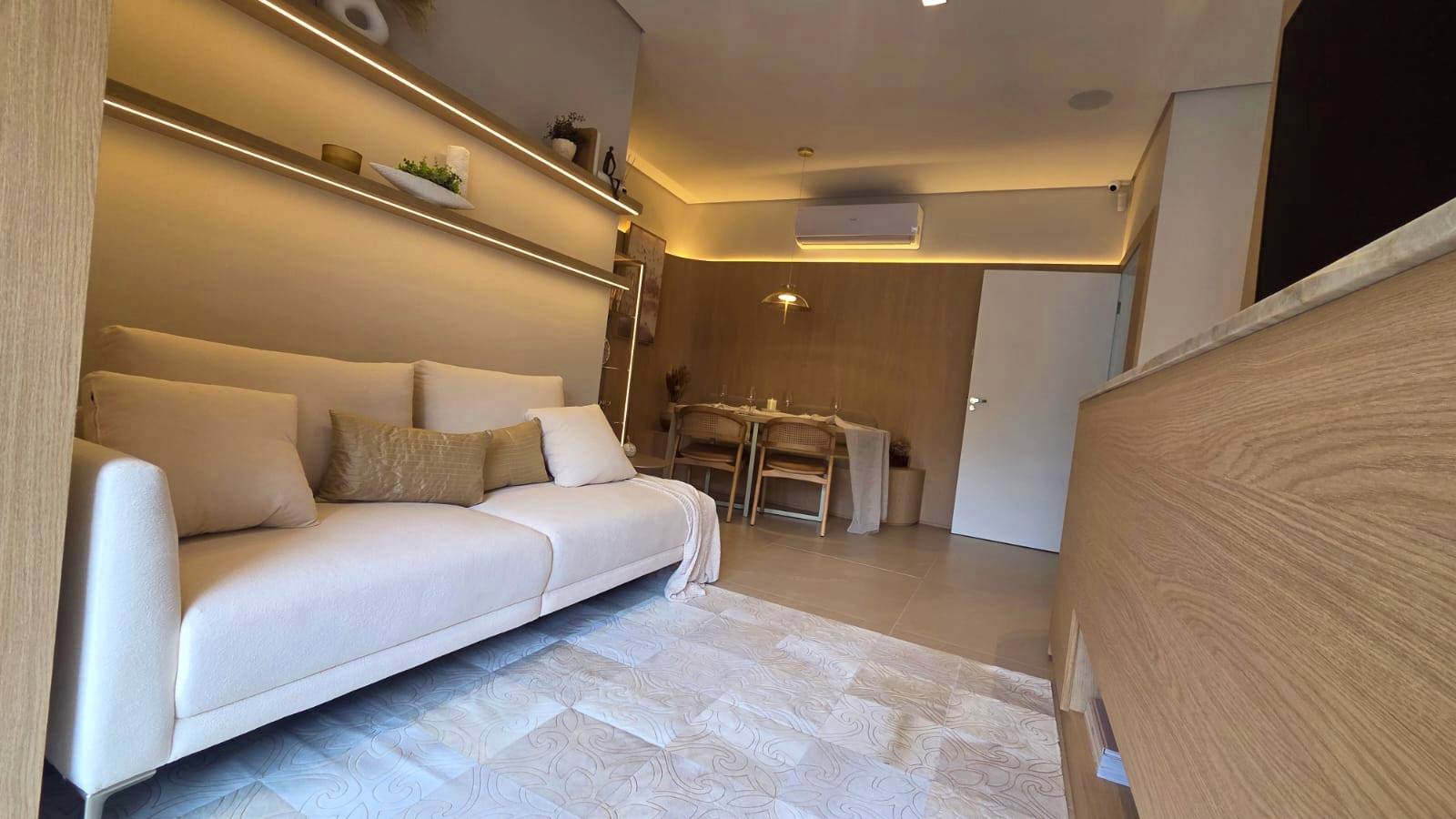 Composta por 2 dormitórios, sendo 1 suíte ampla com 11,59 m², oferece ambientes bem distribuídos, ótima ventilação natural e área social integrada com sala de estar e jantar conectadas a uma charmosa varanda.