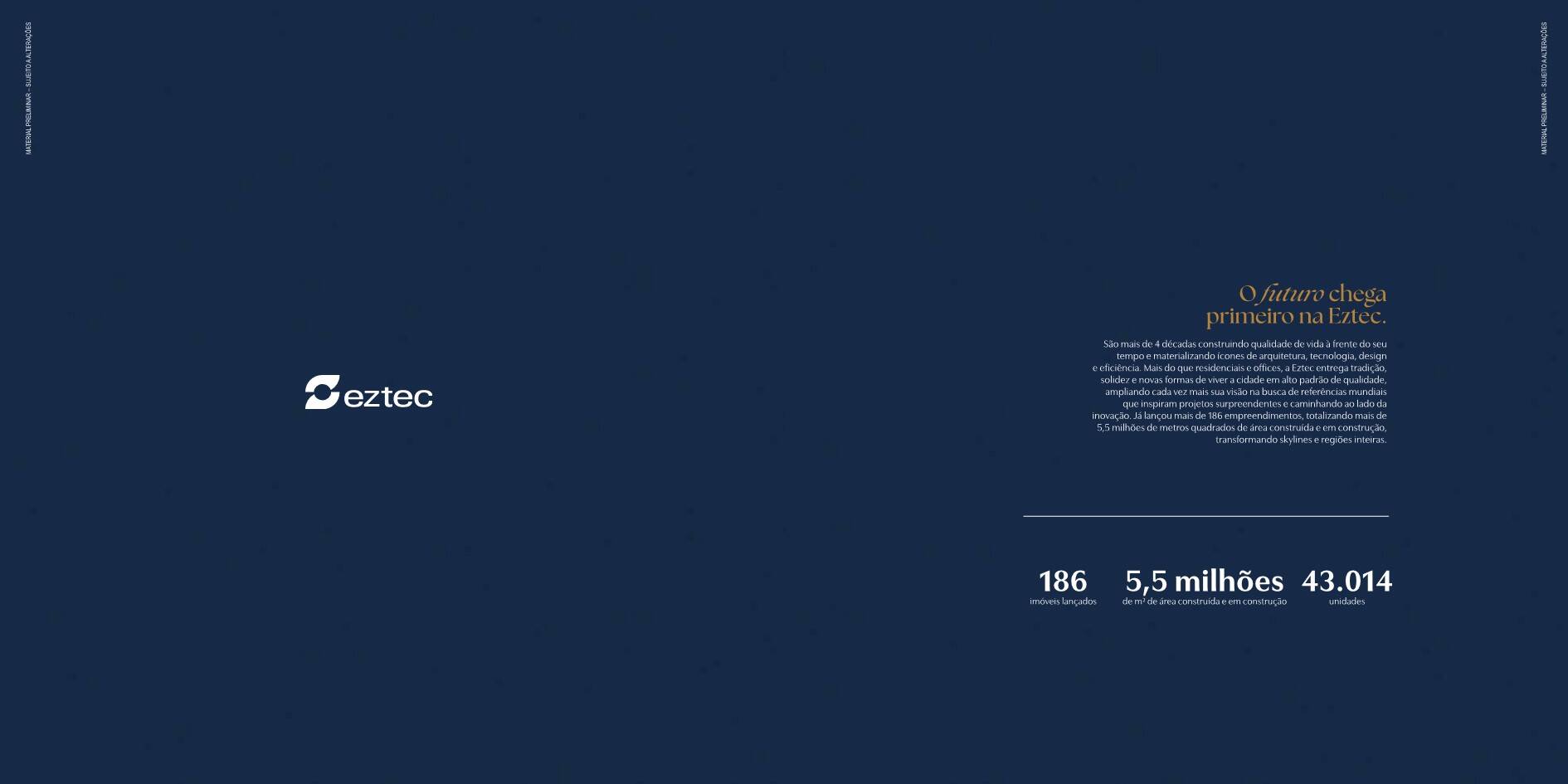 Um projeto grandioso da Eztec, referência em empreendimentos de alto padrão há mais de 40 anos, com assinatura dos melhores profissionais em arquitetura, paisagismo e decoração.