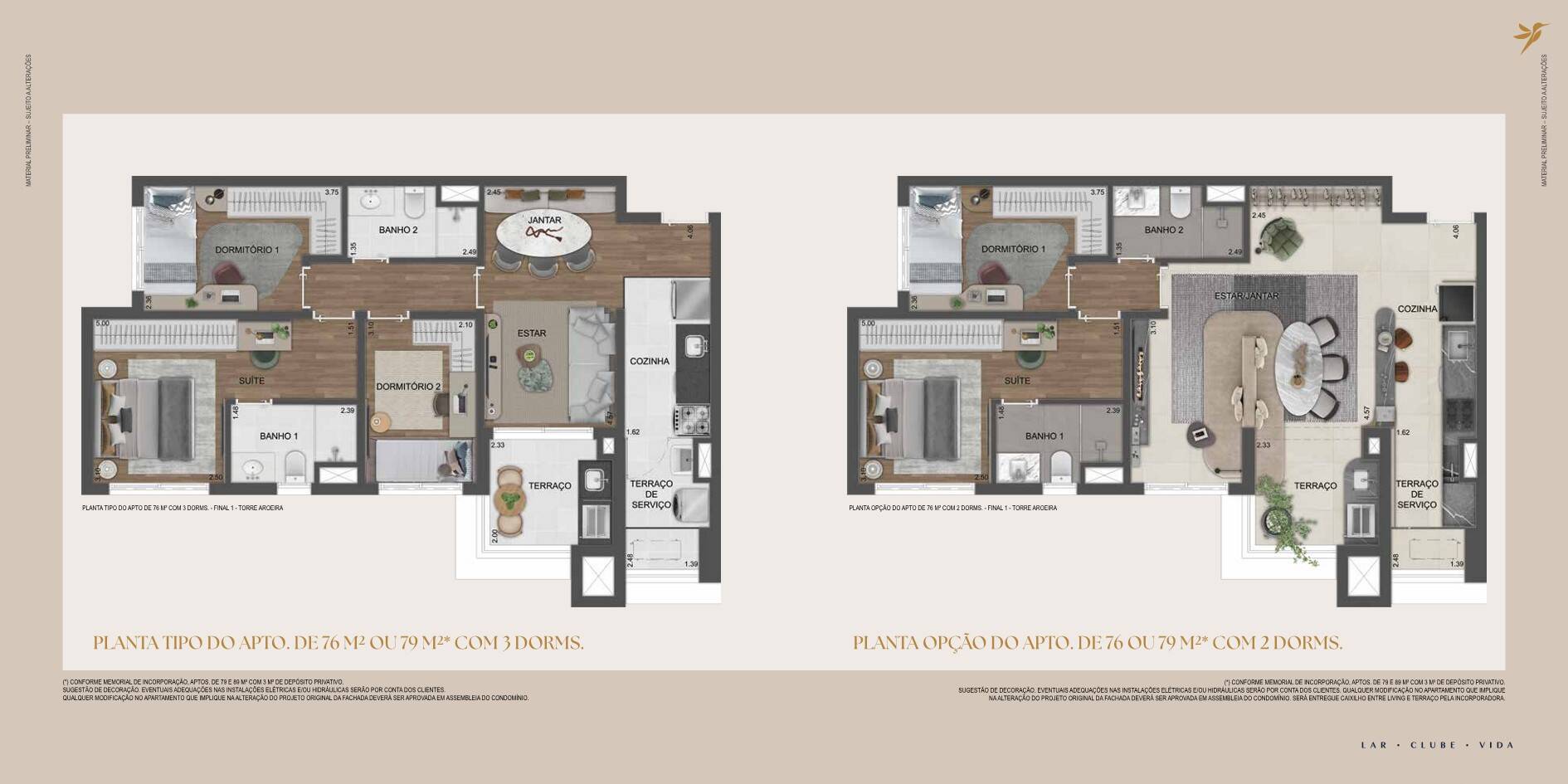 3 Dormitórios – 76 e 79 m² | 1 vaga